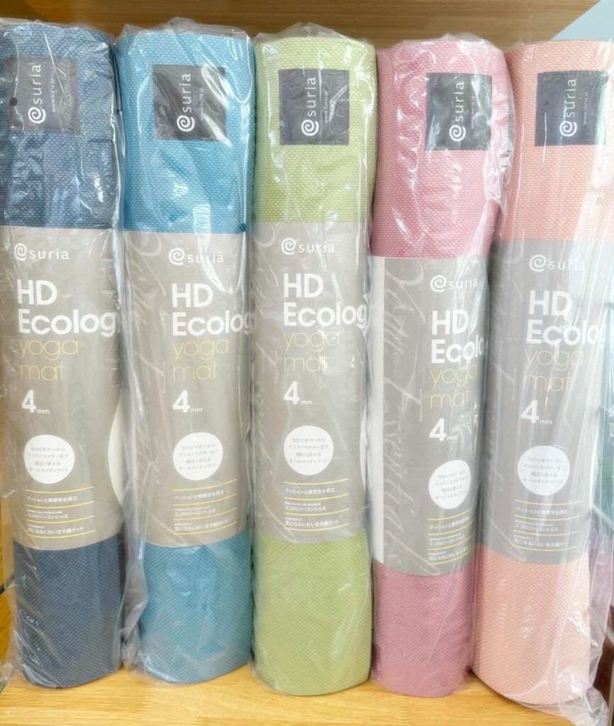 ヨガウェアの他にも、ヨガマットやその他ヨガグッズも勢揃い!