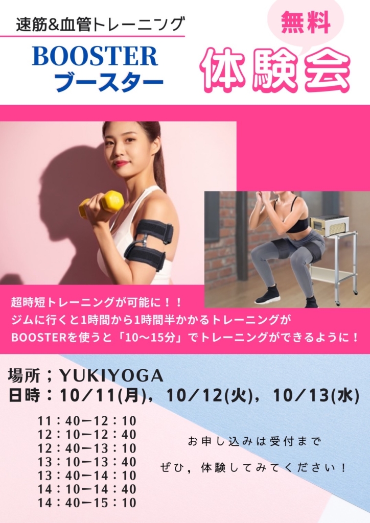 こんにちは☆YUKIYOGAです。 この度、YUKIYOGAでは『BOOSTER』という機器を導入いたしました! この機器の凄いところは、短時間で筋肉を鍛えられる・血流の改善をしてく...